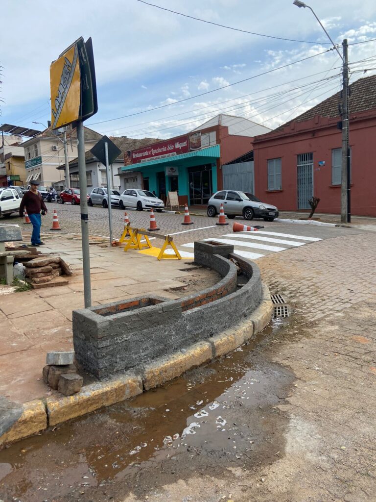Os servidores do setor de sinalização de trânsito fizeram a pintura das faixas de pedestre no entorno. O secretário de Obras, Ronaldo Trojahn, explica que na faixa de pedestre em frente a Casa da Cultura, o paralelepípedo está sendo substituído por pavies para garantir que a tinta permaneça visível por mais tempo. No paralelepípedo ela sai mais rápido e o local é de grande cruzamento de pessoas e por isso é importante que ela seja bem aparente.