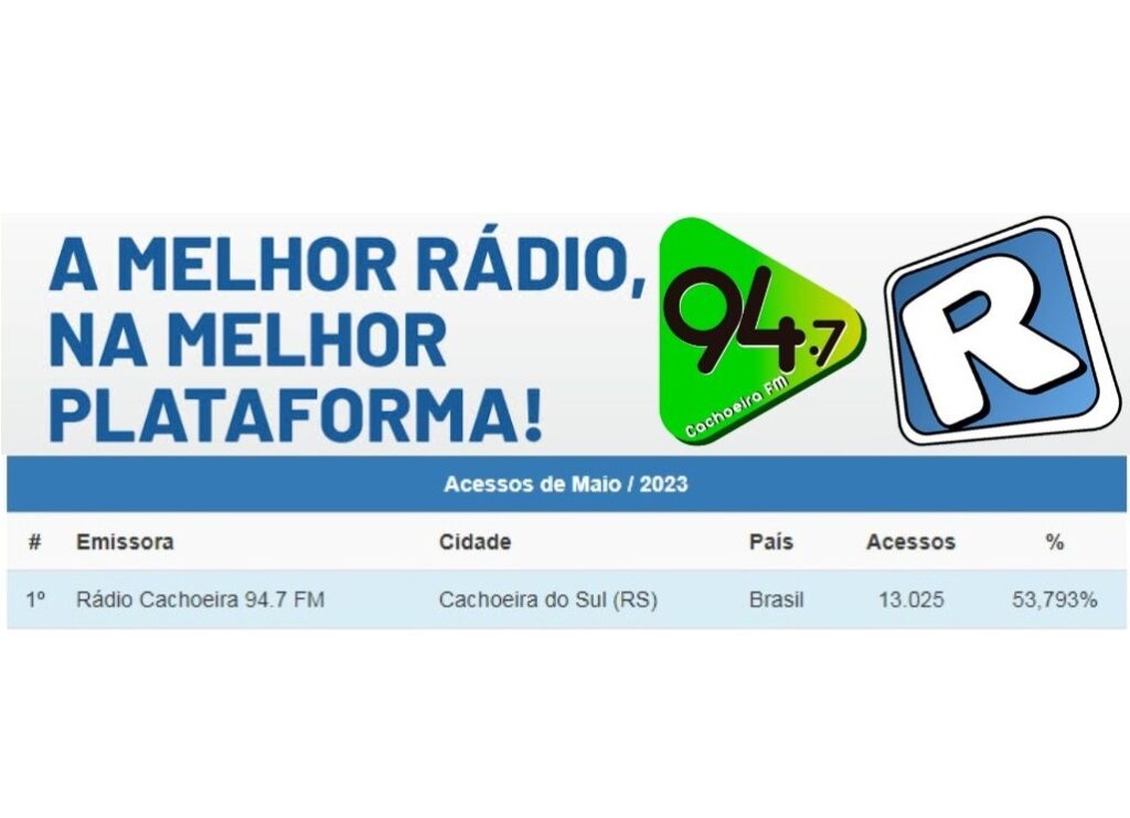 SEGUE O LÍDER! RÁDIO CACHOEIRA EM 1º LUGAR TAMBÉM NAS PLATAFORMAS DIGITAIS