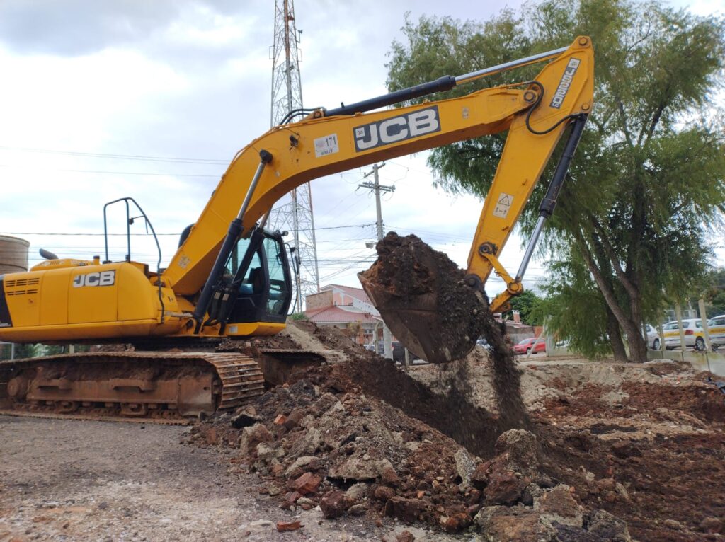 Com auxílio de uma escavadeira hidráulica da Secretaria de Interior, o trabalho começou com a escavação do local para permitir o acesso da equipe de canalização.