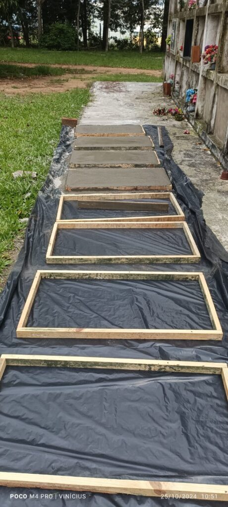 Produção de tampas para carneiras no Cemitério Jardim da Paz.