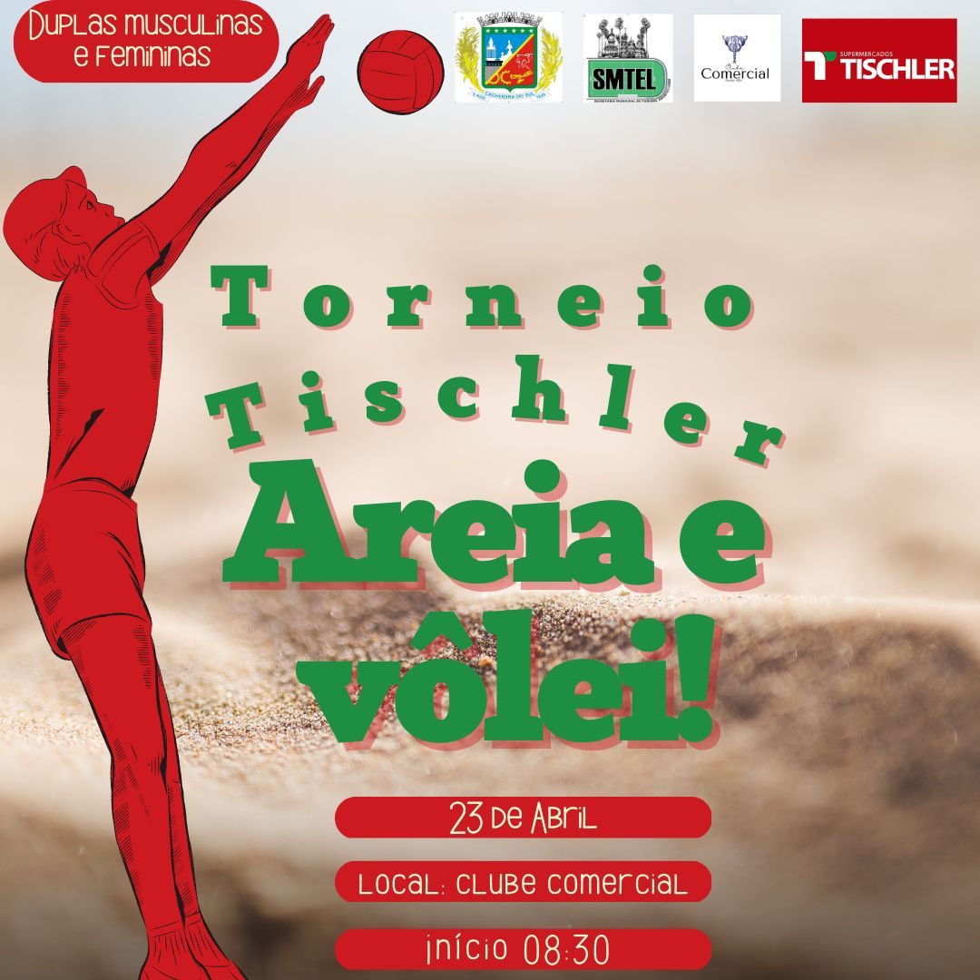 A Prefeitura Municipal de Cachoeira do Sul através da Secretaria de Turismo, Esporte e Lazer em parceria com Supermercados Tischler e apoio do Clube Comercial Sede Campestre, realizará o segundo torneio de “Areia e Vôlei”. Será no dia 23 de abril, no Clube Comercial e iniciará às 8h30.