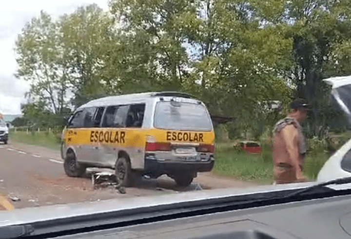 Acidente na BR153 entre Van escolar que transportava crianças e veículo no início da tarde desta terça-feira, 27, quando um veículo perdeu o controle e colidiu com uma van escolar. O incidente ocorreu em frente à Granja Brisch, nas proximidades da localidade das Três Vendas.