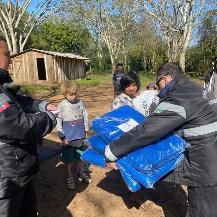 Neste sábado, 03, foi feita a entrega de alimentação e cobertores as famílias indígenas das três aldeias do Município de Cachoeira do Sul.